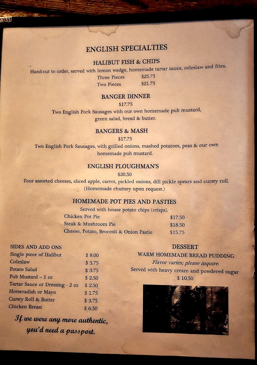 The pub truly shines with its extensive selection of English fare and a delightful array of beers, making it a top choice for both locals and visitors alike. Among its standout dishes, the Bangers and Mash is a must-try—a generous serving of two perfectly cooked sausages accompanied by creamy seasoned mashed potatoes, grilled onions, and sweet hot pub mustard that packs a flavorful punch. Don't miss the Scotch Egg, a unique appetizer featuring a hard-cooked egg enveloped in savory sausage, breaded and deep-fried to golden perfection, served with crispy chips.